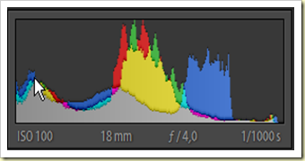 En las imágenes anteriores, partiendo de la foto central, se ha disminuido la exposición en 1 diafragma (foto izquierda), y aumentado la exposición en 1 diafragma (foto derecha). Vemos como el histograma se ha modificado en el sentido correspondiente. A la izquierda, la foto subexpuesta, donde los pixels se acumulan hacia el lado de las sombras, indicando que la toma será oscura y sin nitidez.
